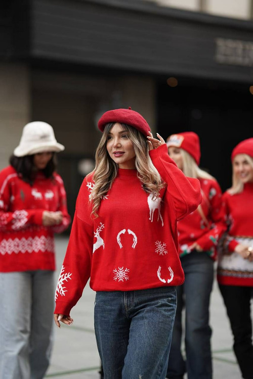 بلوز بافت یلدایی کریسمس جنس پشت نخ فری سایز